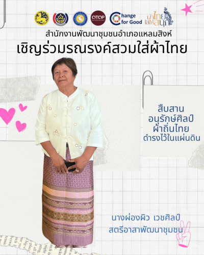 สำนักงานพัฒนาชุมชนอำเภอแหลมสิงห์ ขอเชิญทุกท่านร่วมแต่งกายด้วยผ้าไทย เพื่อร่วมกันอนุรักษ์และส่งเสริมศิลปวัฒนธรรมไทยอันทรงคุณค่า